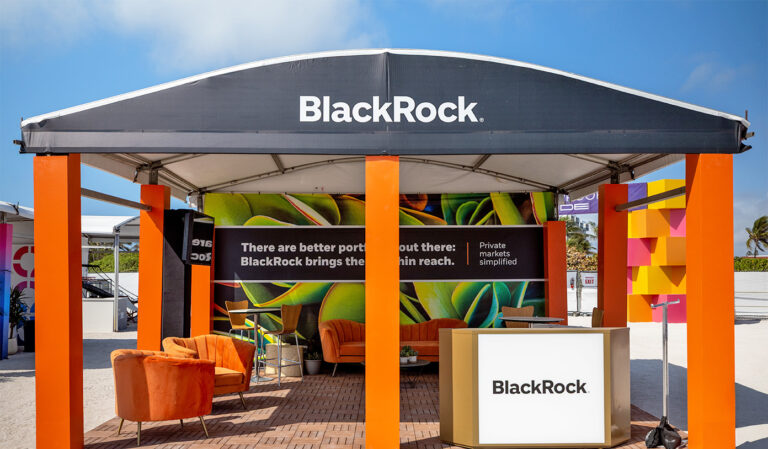 • (1) 10x10' custom canopy structure with your all-white logo on the top and company name in white capital letters across the awning